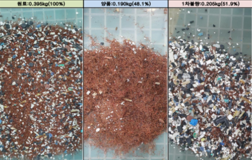 풍력, 와전류, 색채선별을 통해 비철금속인 Al, Cu, 플라스틱류 선별